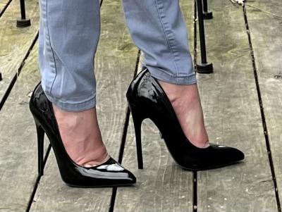 27. I broke one of my own rules yesterday--don't wear dressy shoes with a casual outfit. However, I was going through my shoe collection, trying to get it under control. This involved some vetting, or re-vetting, if that's even a thing. As a result, I wound up wearing black patent pumps to the grocery store to purchase some comestibles. They are 11 cm, and definitely keepers. I felt the need to re-vet because I actually had to wipe the dust and cobwebs off of them, so it's possible that I haven't actually worn them since Christmas 2024, the last time I distinctly remember wearing them. But is it too much for a non-dressy outfit?