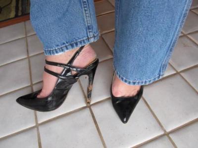 1. Thought I would share this post about a very old pair of Pleaser ankle strap pumps that I have finally decided must be put out to pasture. I couldn't say how many miles I've worn these amazingly comfortable 5 inch heels, talking Melroseplant level I'm guessing. I've re-heeled these at least 6 times. Finally blew out the sole and upper part of the vamps this last week. Surprisingly they are still easy to walk in and sturdy but still long past any visual appeal. I think these definitely paid themselves off many times.