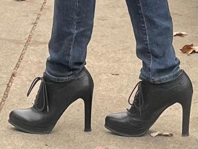What would a Melrose expository post be without statistics? Here are the numbers: 4 3/4” heel, 3/4” platform, for an effective steepness of right at 4 inches. Diameter of the heels is about 3/4”. I have had them reheeled three times, and am very, very close to needing No. 4. I have walked 191 documented miles in these, plus any number of undocumented/incidental miles. I feel like they are going to fail sometime on the next reheel, and I will be sad when they do.