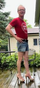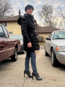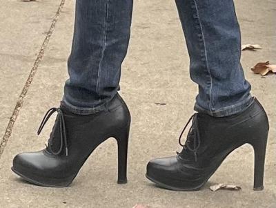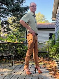 My own sense of style has gotten quite a bit more casual in the last 10 years. When I first started wearing heels in public, I felt obligated to be dressed up as a part of that look. I went through a period of wearing a lot of sport coats with button down shirts when I was outside of work. That was unusual for this town, but not rare. Remember, this was before Covid. People actually used to dress up for office jobs and maybe stop by the grocery on the way home. Were I to dress the exact same today, I would be much more of an outlier, heels or no heels. It is no wonder that my tailor friend lost her job at Mr. B's, which is a men's clothing store. I assume it still is, anyway.