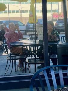 Very well. I did not get a photo taken of my church Outfit Of The Week, but I did manage to fall asleep in the afternoon, so that I was forced to go out to dinner, being as I woke up too late to begin cooking supper. It was nice enough weather to eat outside, and I was forced to look at our reflection in the storefront windows the whole time. It's all I got. Oh, by the way, somebody I know walked past and said, "Beautiful shoes, as always!" I didn't get turned around in time to see who it was. That sort of comment drives my wife crazy, though she keeps it well hid these days. -