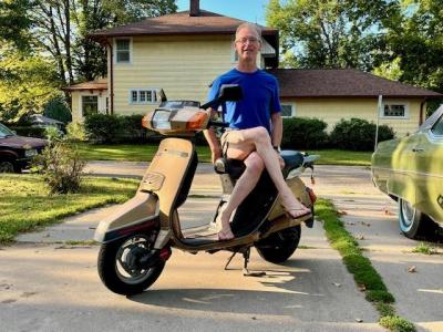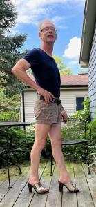 I'm very sorry to report that I've been going the wrong way lately. That is, I wore shoes pretty much all of our Labor Day weekend which I don't even consider to be high heels. My excuse is that I spent nearly the whole holiday under the weather. I felt absolutely terrible for most of three days. Speaking of weather, it couldn't have been more pleasant the entire weekend, and I did take the opportunity to get out of bed and get a couple of snaps (and yes, I don't pretend that they're anything better than that). Shoes are a mere 8 cm (on the scooter), and effective 9 cm (on the deck). I sometimes wonder why I don't wear mid heels more often, but I usually come to my senses after a week or so.