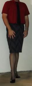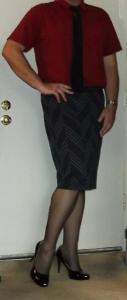 Lime15 Posted June 4, 2013 Author Posted June 4, 2013 Thank you everyone for your comments, they really mean a lot to me. The "regular" job has been eating up much of my time but I've been keeping up on my business casual with skirts ensemble on the couple (or one) days a week I work from home. Today my girlfriend lent me one of her skirts and a belt to go with it. Our skirt size is about the same although I'm usually down one since, well, I don't have curvy womanly hips like she does. Not as nice as having the same shoe size but heck, I'll take what I can get. I paired it with a black collared shirt, black sheer hosiery, and my Payless Janine pumps in black patent. This whole outfit has been EXTREMELY comfortable throughout the morning. Really makes me look forward to working from home next on Friday.