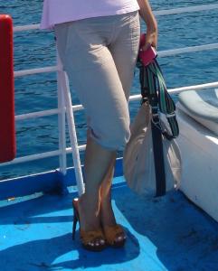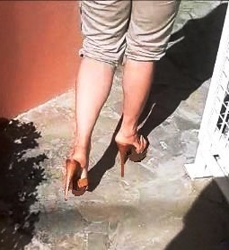 sixinchheels Posted February 22, 2015 Author Posted February 22, 2015 Another older pair of 5" snake skin wedge mules. These were in the past her eveyday summer morning mules for running errands. The picture is from a ferry-boat, we were sailing for vacation. It was peak season and the ferry was very crowded, so we did not find anywhere to sit during the 3 hours that the trip lasted. The picture was taken just a few minutes before arriving to our destination, that's why you will notice that her toes were a little "reddened", as she had already spent the whole 3-hour trip standing and walking on these high heeled mules. Waiting for your comments!