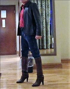 ANDROgenius Posted March 15, 2016 Posted March 15, 2016 Hi folks, this post is about creating your style, becoming used to wear heels as a part of your (daily) style and having a good time Before I start: this is the first posting of a series of posts, where I will show my styles and hopefully motivate you to go out and have fun in heels. My story is quite long. Starting with 20, when I bought my first pair of heels (too high; too loose fit), then hiding away my boots from my girl friend to a phase, when I was 30 where I started to try to create what you could call "your style". I know, that for many of you wearing heels in daily life is not as easy as it is for me. But: I think and I got the feedbacks that if your wear heels with style and attitude, things are more easy - and this is what this topic is about. So let´s start! My experience is that cowboy boots are a great starting point. You can tell a story about them - like about great boot makers like Paul Bond. So it is not only about wearing heels, it is about a story! A cowboy boot outfit can be quite easy to create. I like my shirts not tucked into the jeans, because I like a silhouette that is "flowing". So here is my first look: Creating your style is about matching things. Here it is a colour - in this case red. A litte bit of more fancy than simple brown boots, these cowboy boots are easy to walk in, have a nice heel and are great for every day. So here is the look: These days my outfits are more edgy - but as I wrote, I want to help you to create your style and give you some starting inspiration. By the way the jeans is a bootcut male jeans from Levis - style 517. The boots are from Lucchese. 4
