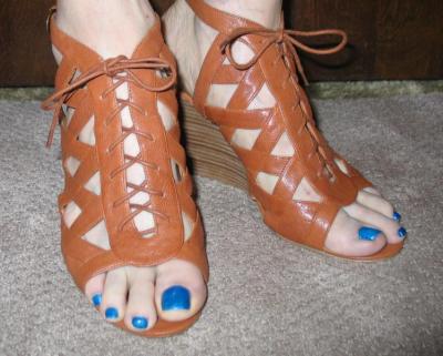 Logjam Posted July 13, 2014 Posted July 13, 2014 I DID IT! Pro pedi with color. I had to work through a lot of angst and muster my courage to do this. Walked into the salon where I have been getting (colorless) pedis for a while now. The young woman who did my mani/pedi seemed very receptive to the idea. As I recall, her exact words: "Great! We can have some fun!" (Hope she wasn't just being gracious to a customer...) When she started the mani, she asked if I wanted to put the same color on my fingers. I had to decline that, it would not go over well where I work. So, here are my first-time pro polished toes, with my new 9W wedge sandals in a cameo role. Regards, Logjam